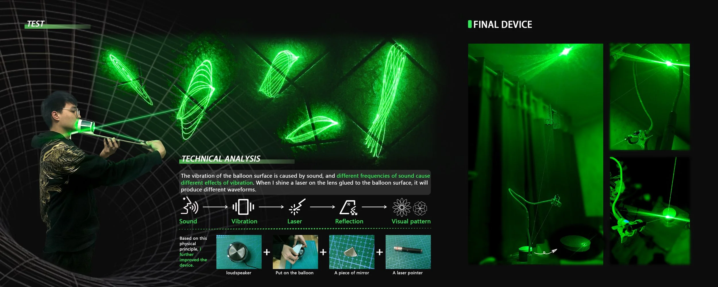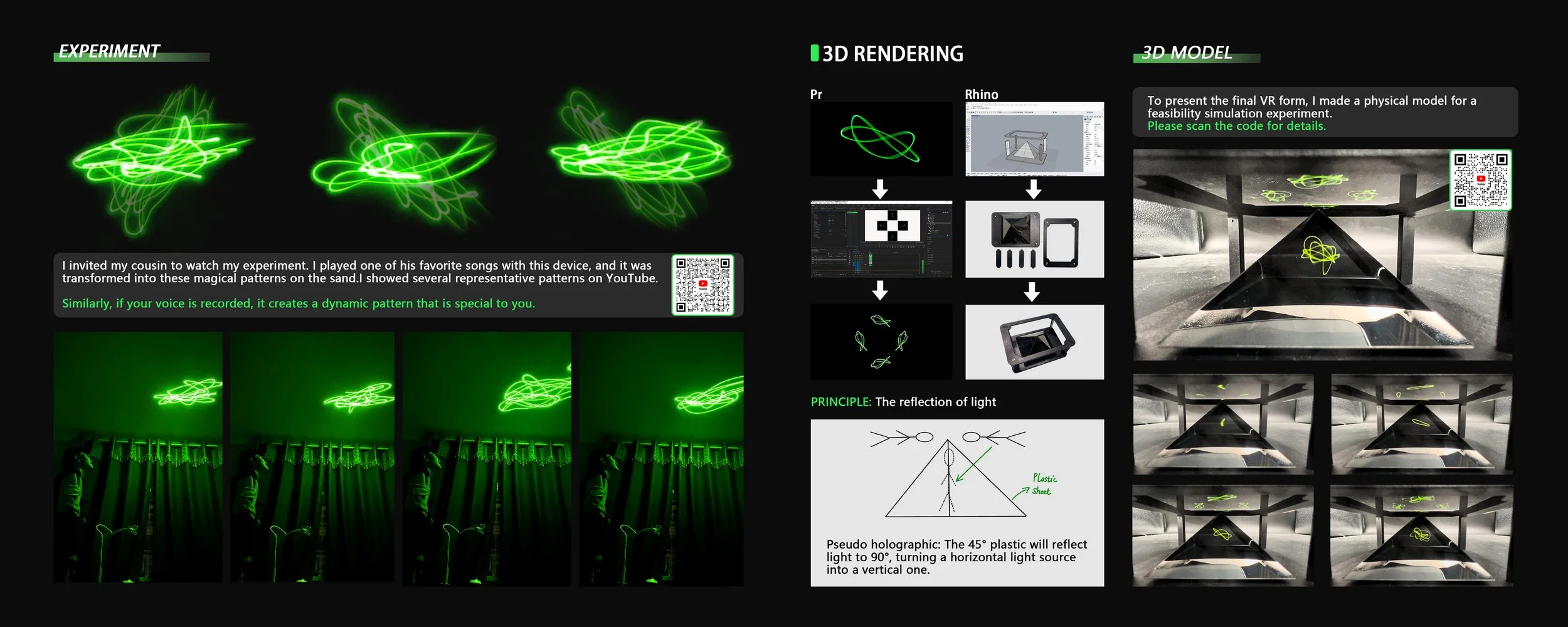 This is a highly creative interactive and discursive design project. I explore how sound can carry human beliefs, and experiment with visualizing human voice data as a new form of human existence.