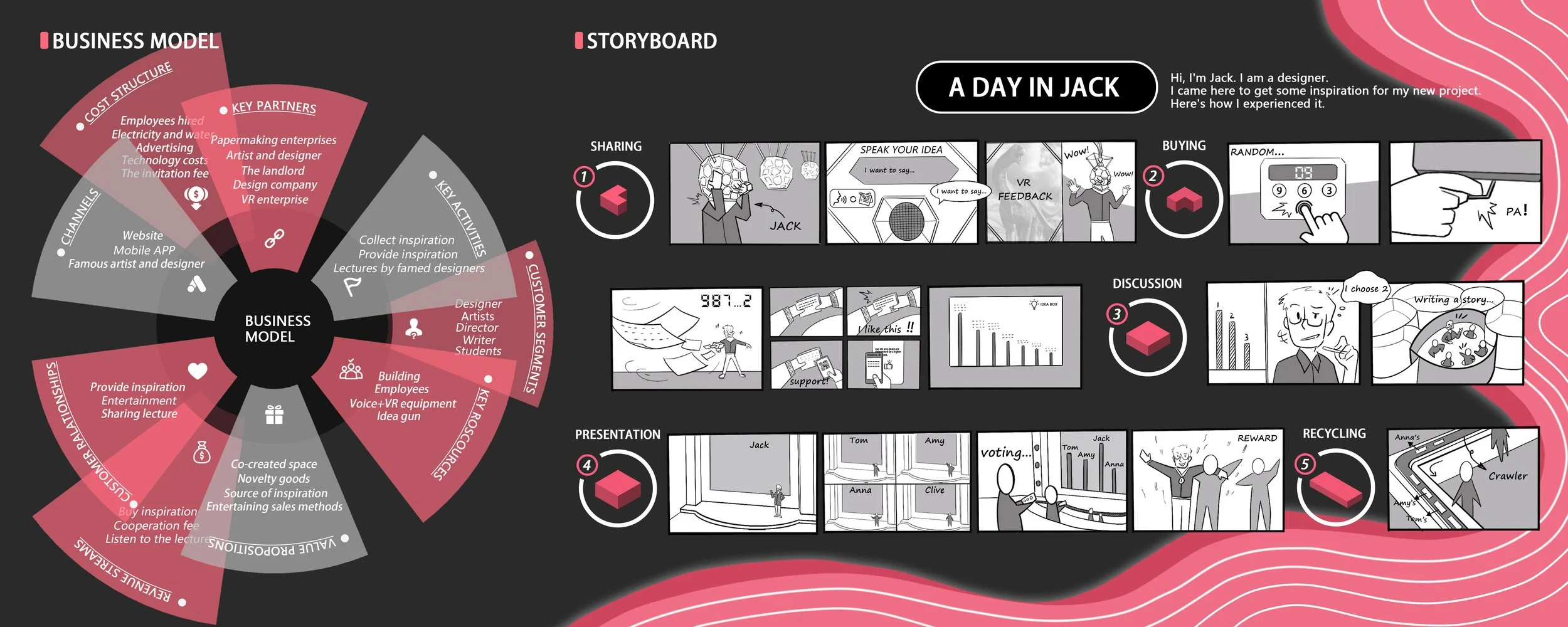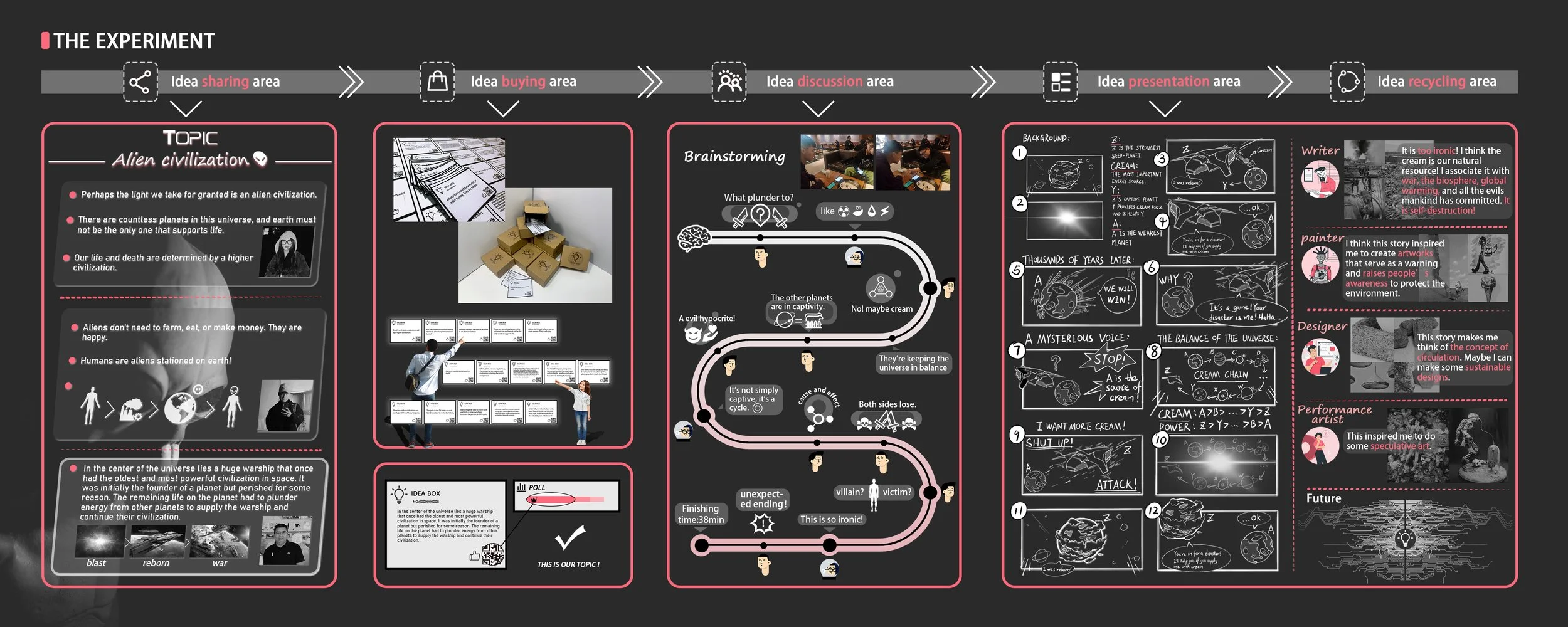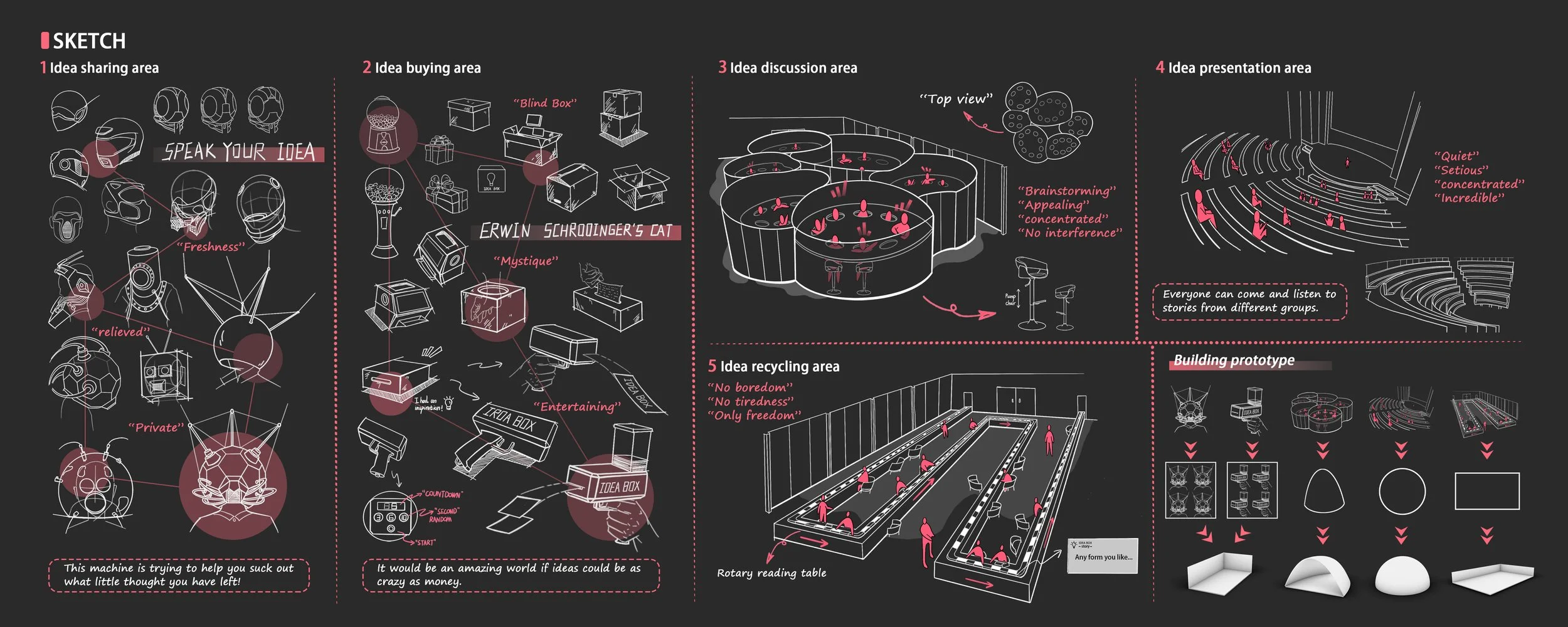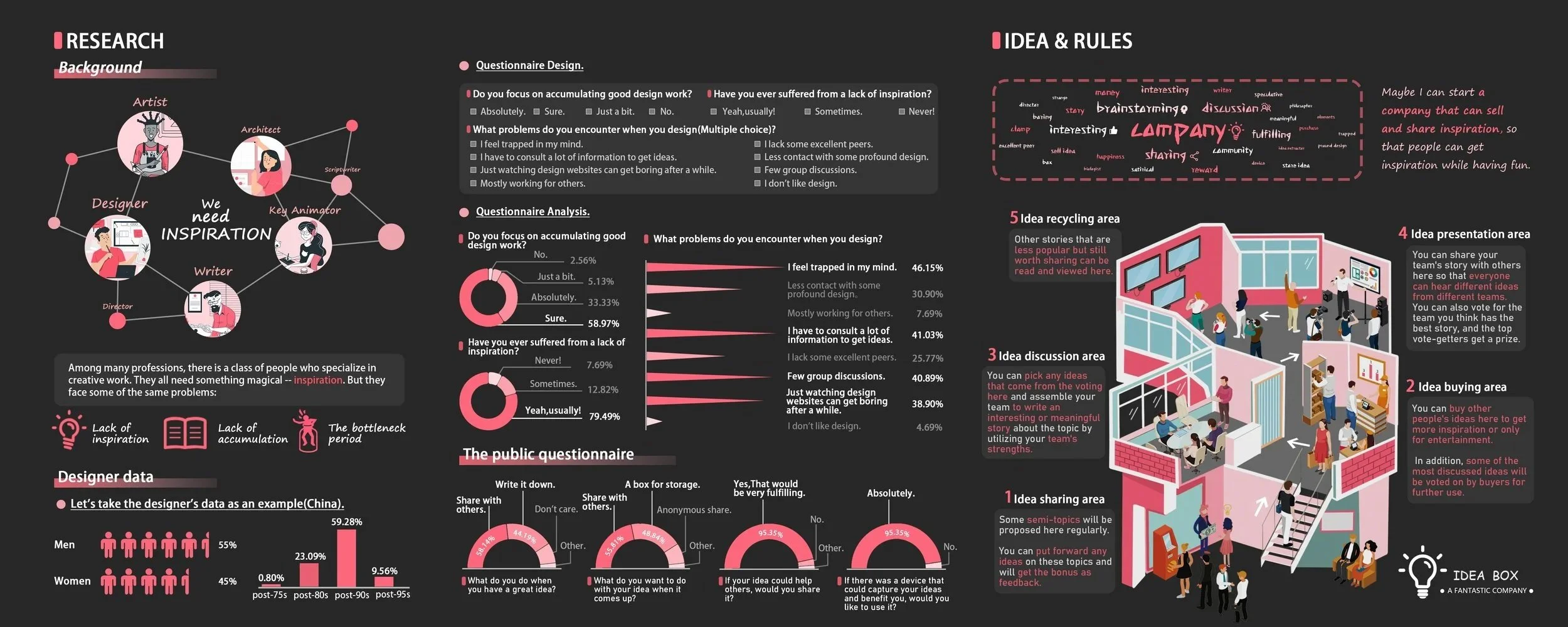 All creative practitioners — including designers, artists, architects, writers, playwrights, and directors — rely on something magical: inspiration. Yet inspiration often depends on large communities for stimulation, and many creatives struggle with its limited accessibility and efficiency. I began to imagine: what if we could collect inspiration from everyone and establish an “Idea Selling Company”? It felt both provocative and compelling.